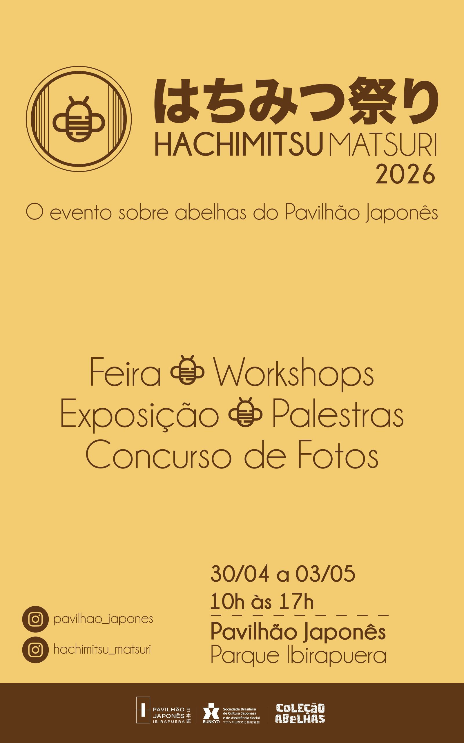 Recém-reformado, o Pavilhão Japonês do Parque do Ibirapuera, em parceria com o Coleção Abelhas, realiza a 5a edição do Hachimitsu Matsuri, com bazar, atividades, exposição de fotos, palestras, workshops e convidados especiais. Em japonês, “hachimitsu” significa mel de abelha, e “matsuri“, festival. O evento acontece nos dias 30 de Abril, 01, 02 e 03 de Maio.